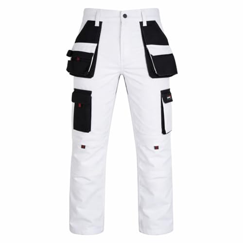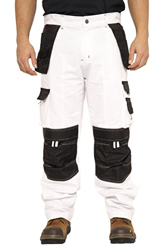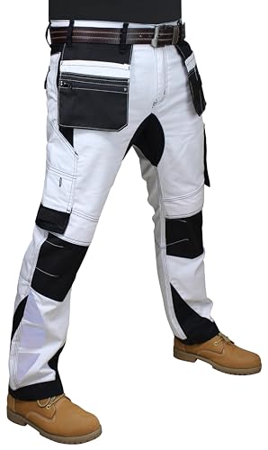 Rider Protec Mens Painters Trousers Decorators Trouser Mens White Cargo Combat Pants Work Trousers Men Working Pants for Men, 36W / 34L