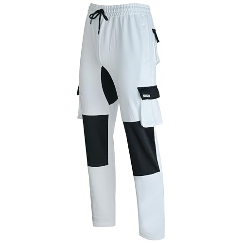 Mens Tracksuit Bottoms - Casual Cargo Pants With Multiple Pockets Loose Fit Straight Leg Comfortable Trousers For Autumn Winter Daily Wear (White, XXL)