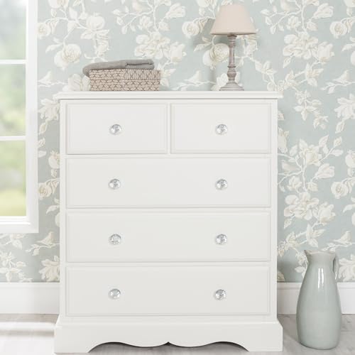 Elm home and garden Painted Oak Cream Off White 6 Drawer Chest Of Drawers Wide Large Fully Assembled