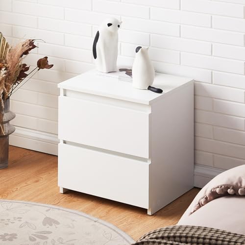 LEMROE Small Bedside table with 2 Drawers, White Chest of Drawers Nightstand Matte Surface Wooden Storage Cabinet for Bedroom Home Furniture (White, 2 Drawers)