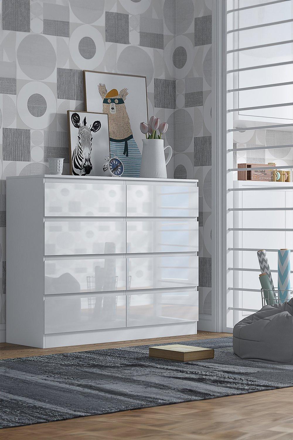 8 Drawer High Gloss White Chest Of Drawers - Stora