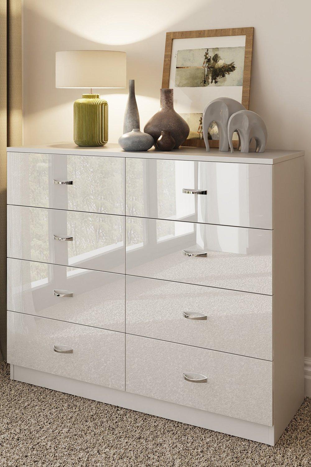 8 Drawer High Gloss White Chest Of Drawers - Chilton