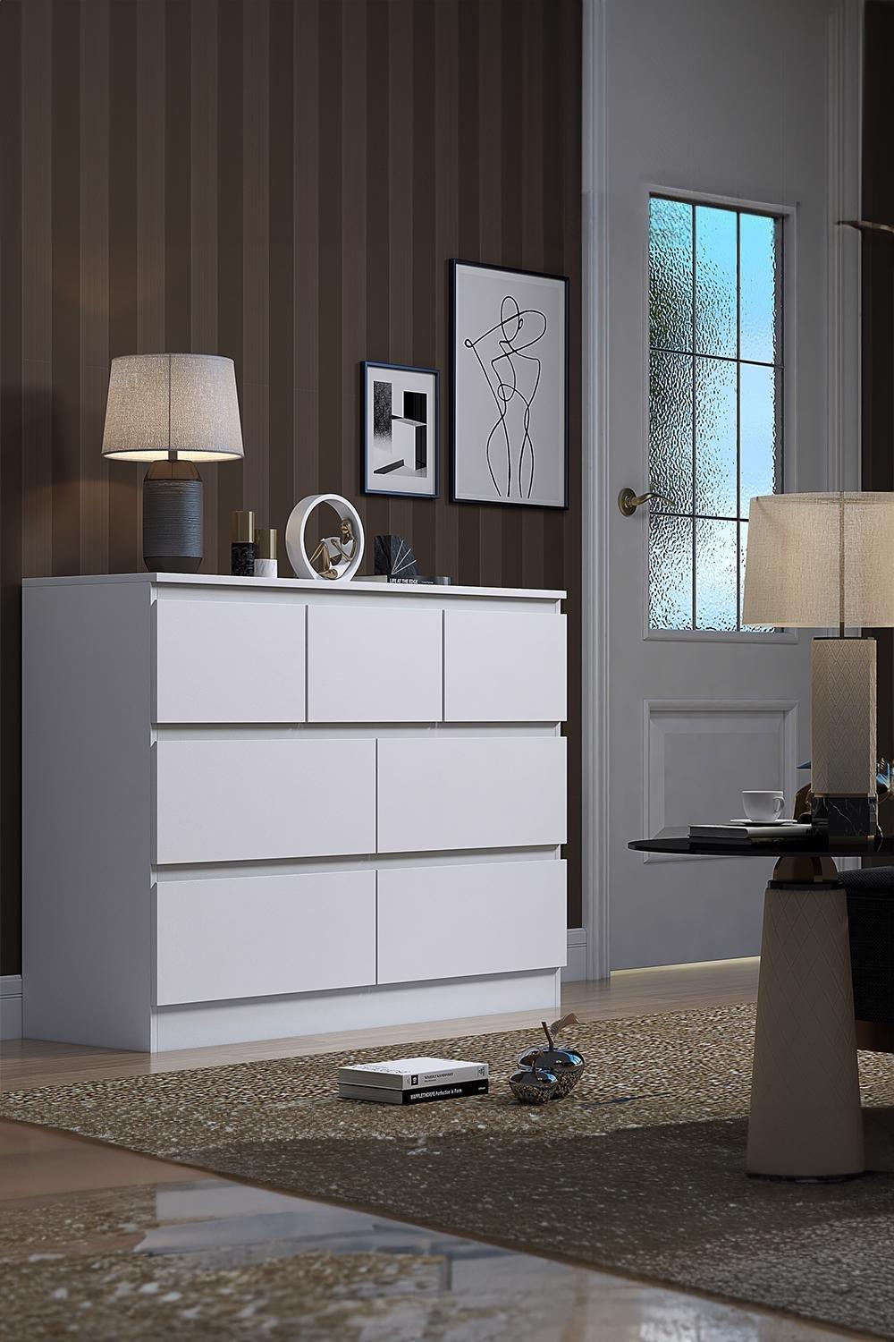 7 Drawer High Gloss White Chest Of Drawers Merchant Chest - Stora