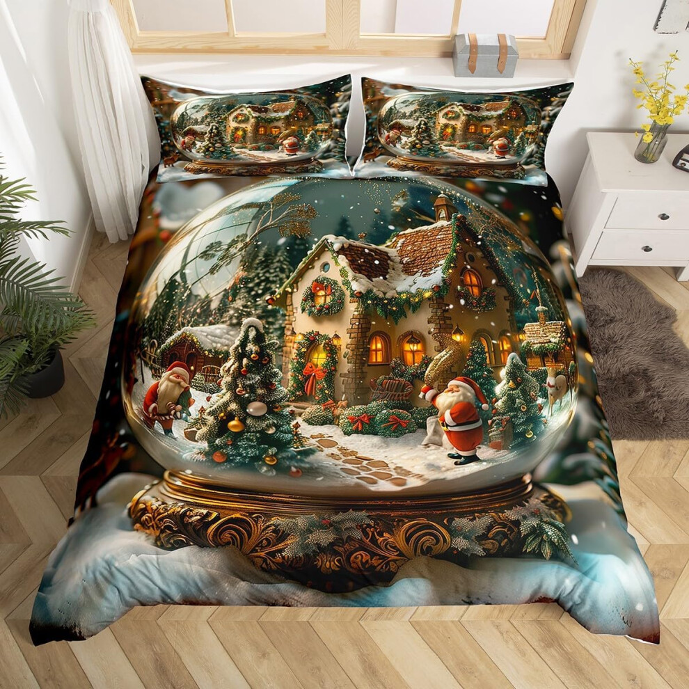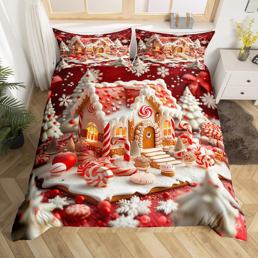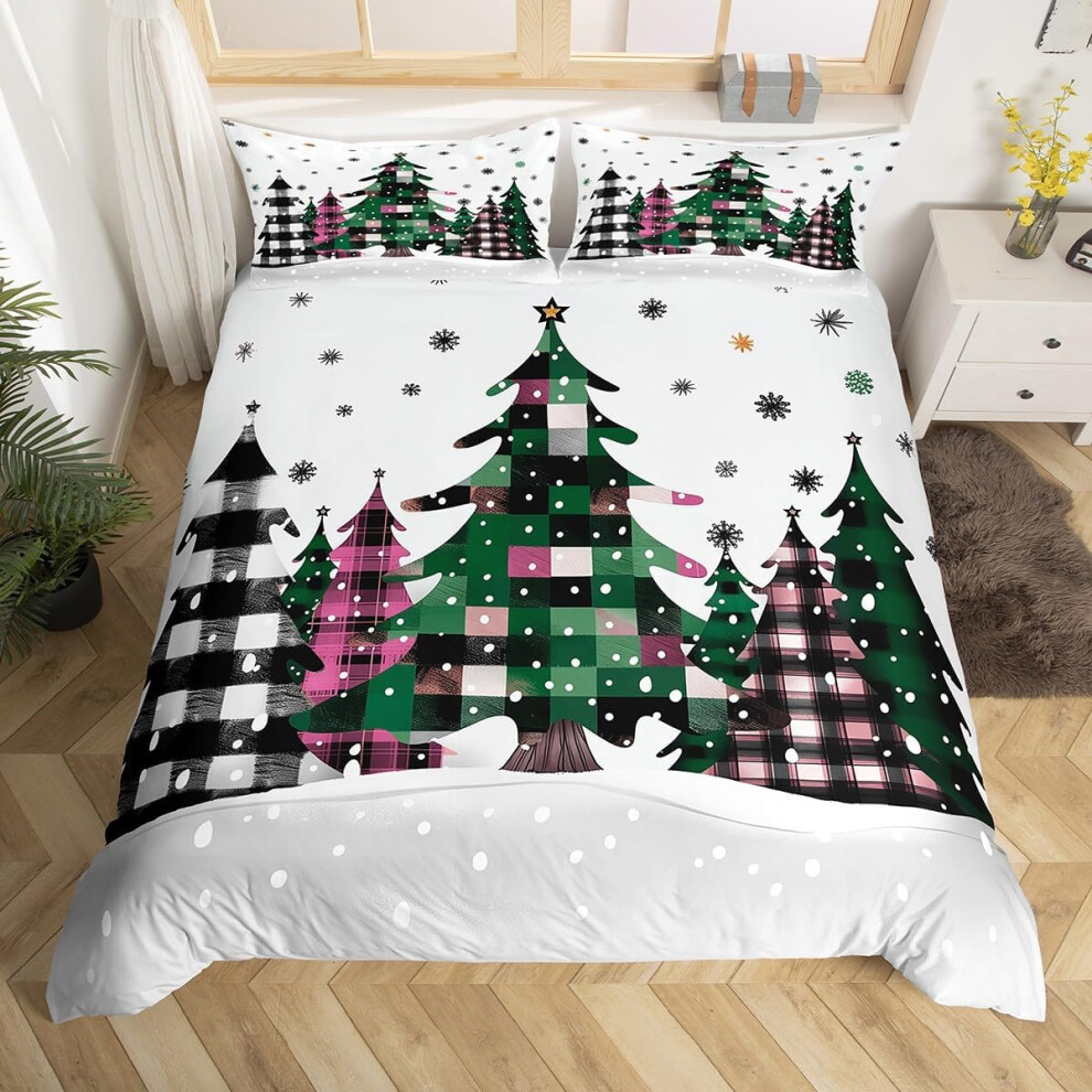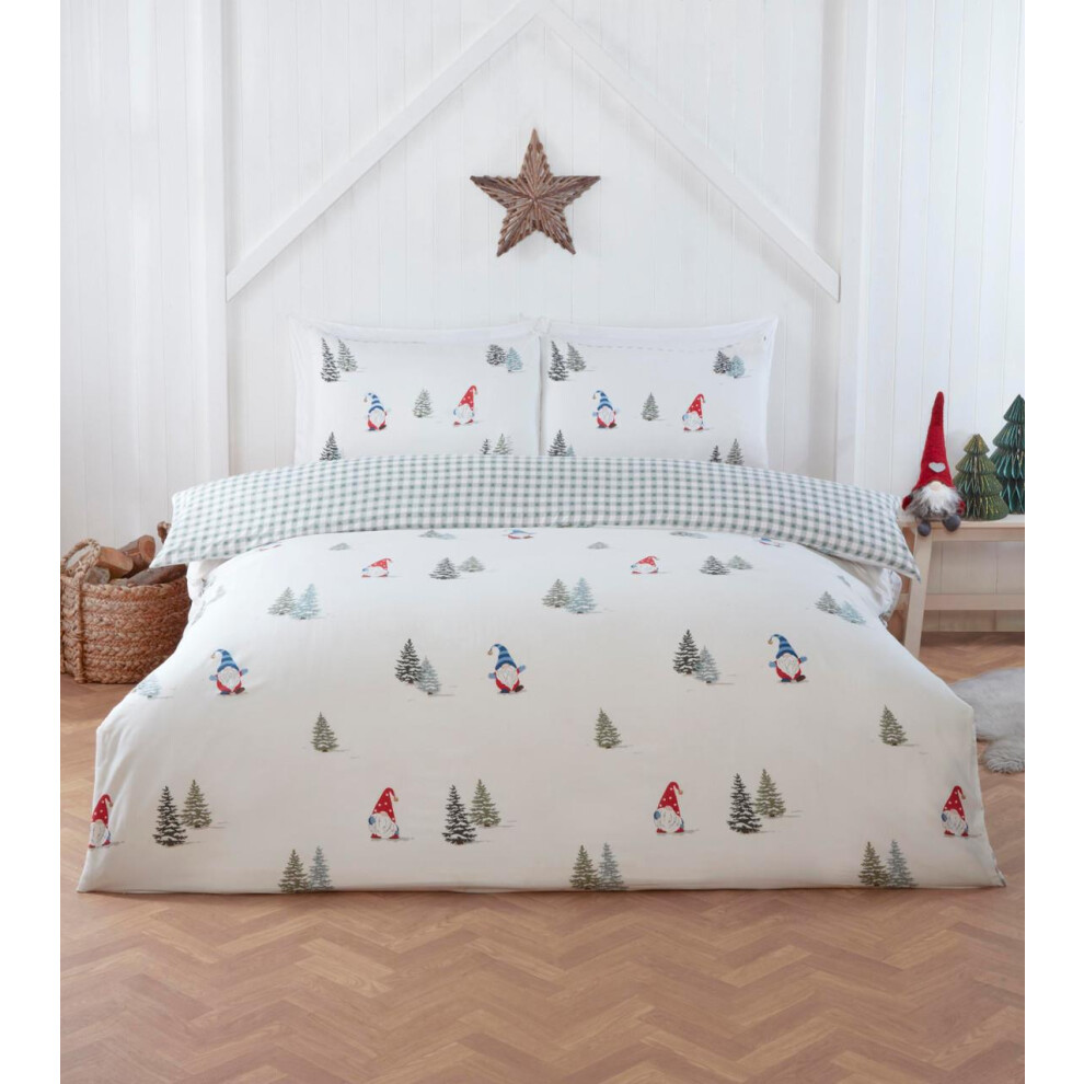 (King, White) Bedding Duvet Cover Bed Set Christmas 180TC Festive Reversible Gingham Gonk Xmas