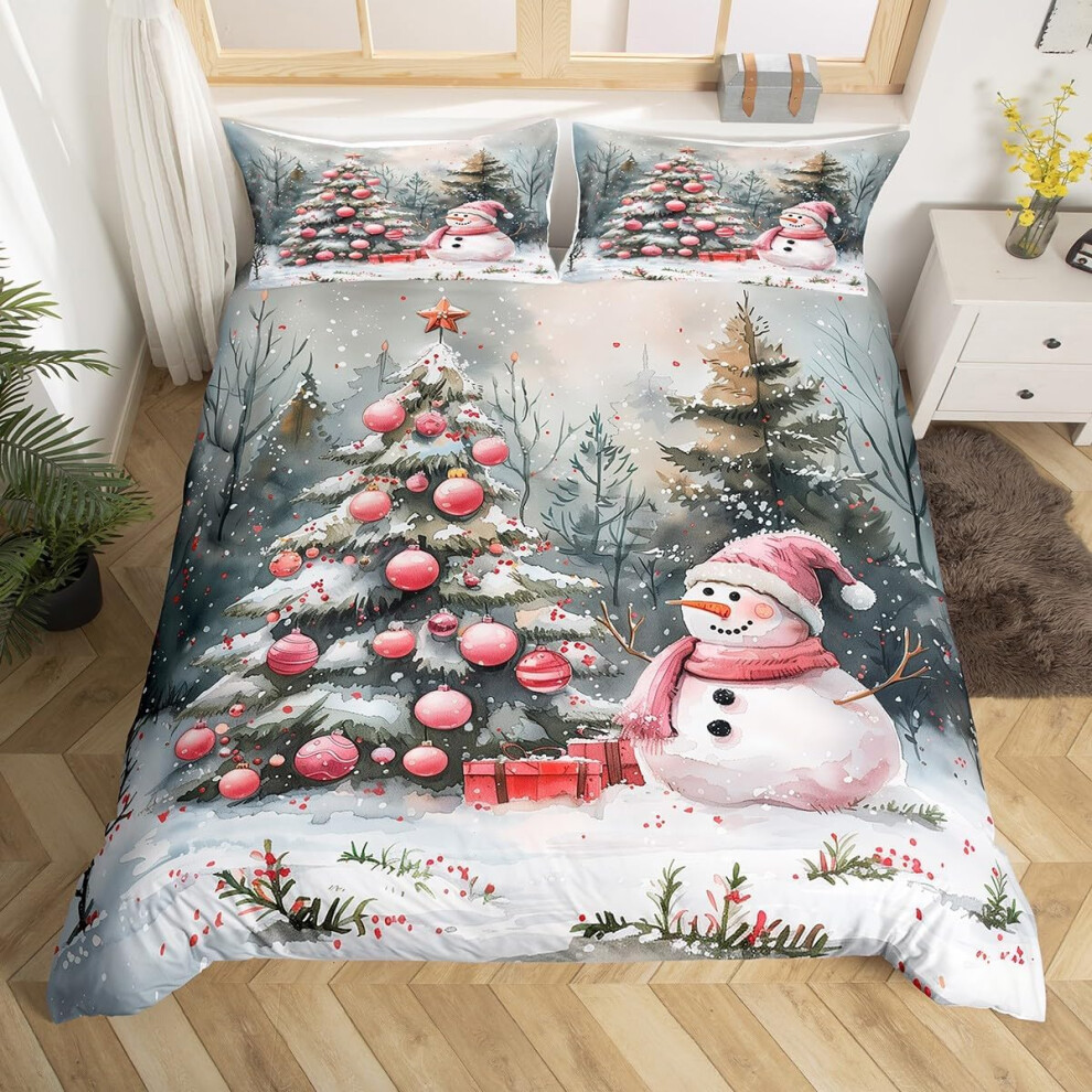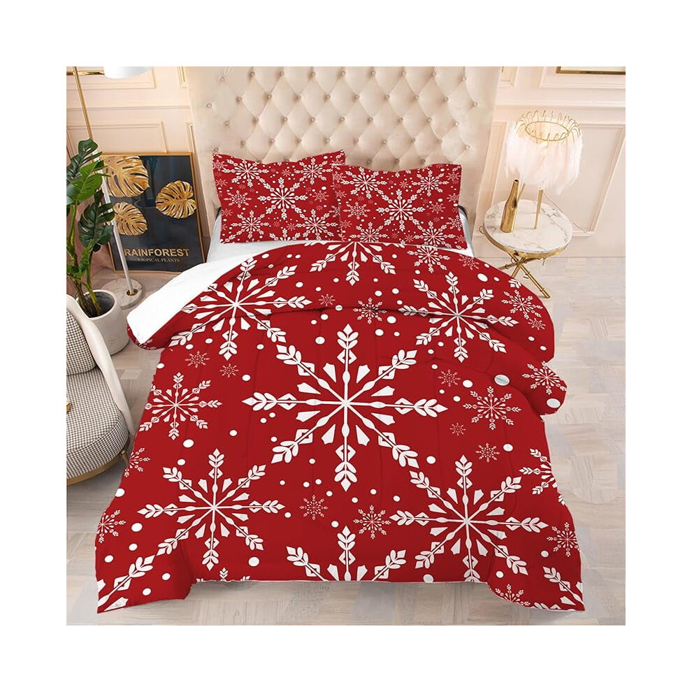 Comfortable Christmas Snowflake Twin Bedding Set, White with Red Snowflakes, 1 Duvet Cover & 2 Pillowcases for Kids, Teens, Adults