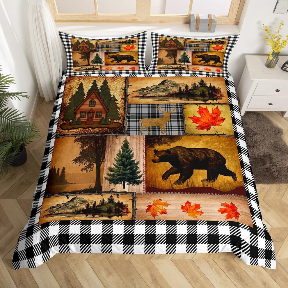 (Black White, Double(No Comforter)) Homewish Rustic Cabin Decor Duvet Cover Double,Christmas Hunting Deer Bear Wild Animals Bedding Set for Teens Boys