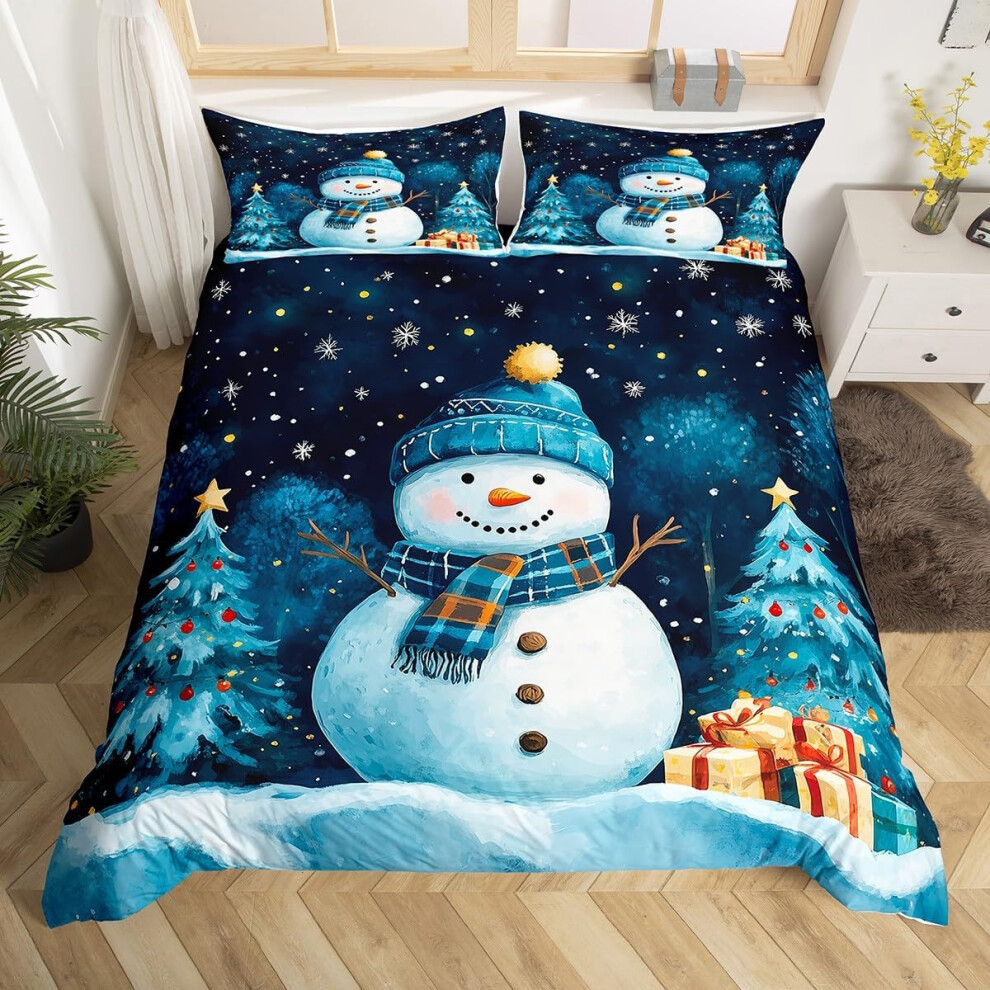 (Blue White, Double(No Comforter)) Homewish Cardinal Double Bedding Set Red Bird Winter Xmas Comforter Cover,Christmas Rustic Vintage Farmhouse Duvet