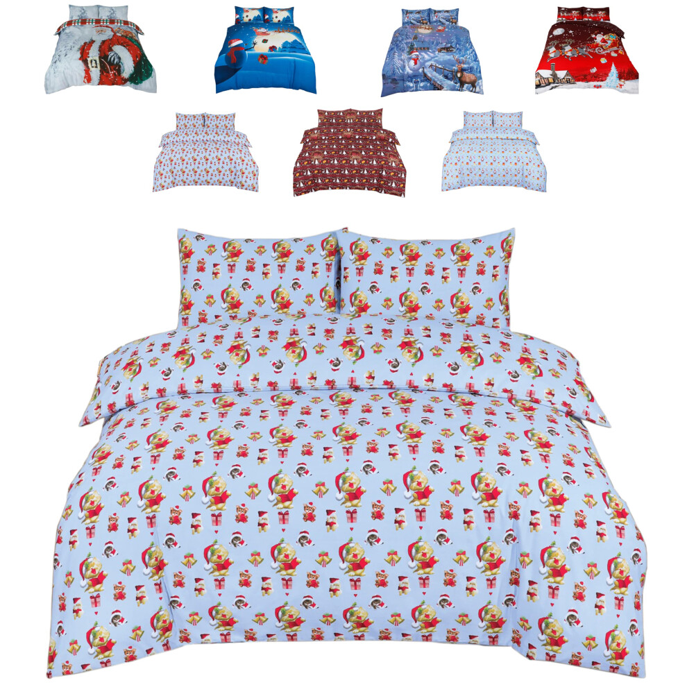HOMEMAKER BEDDING Christmas Duvet Set Teal White Reindeer Stag Hearts Xmas Trees Festive Quilt Cover (Double)