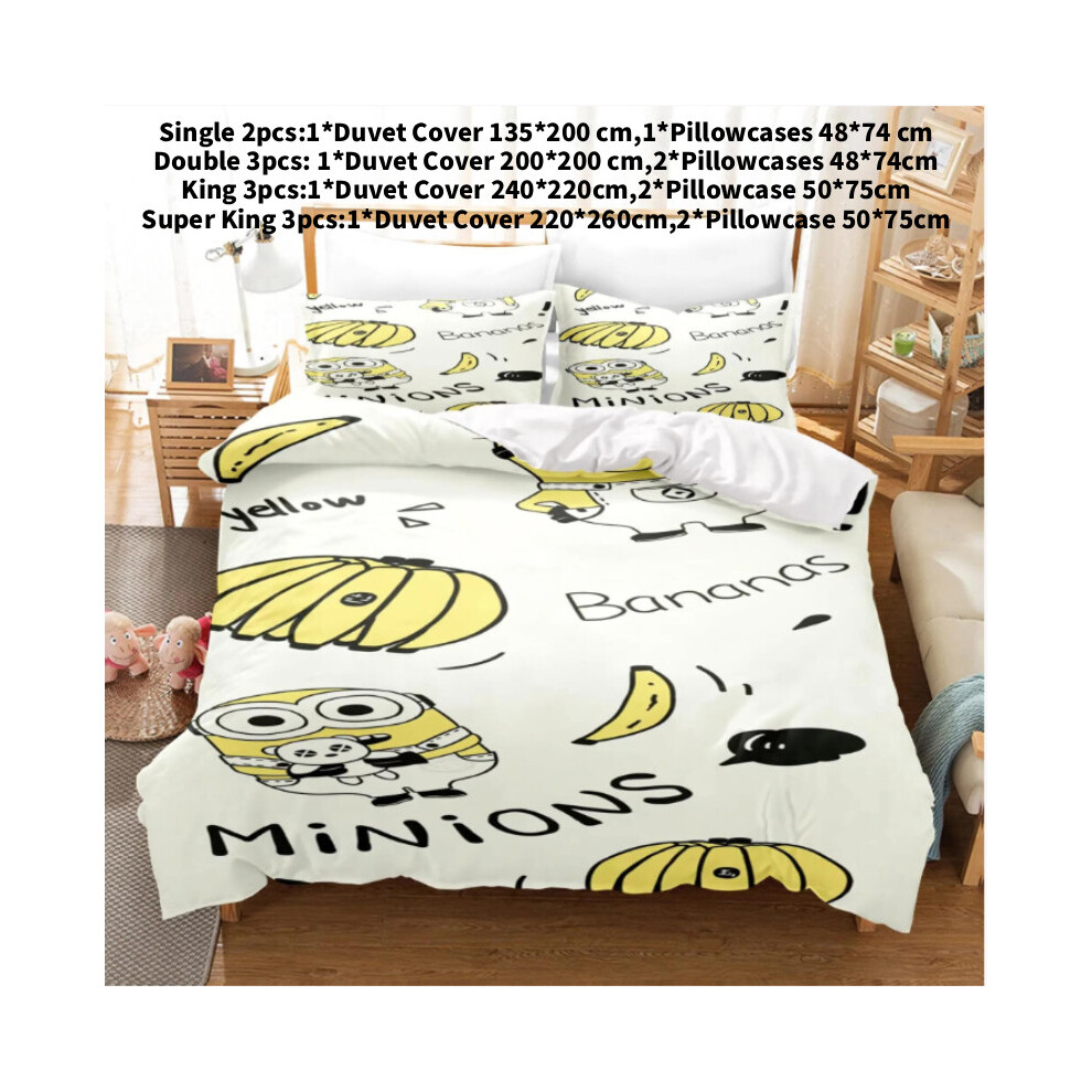 (White, Double(200x200cm)) Duvet Minions Anime Cover Set Comforte Printed Cartoon Twin Bedding Christmas