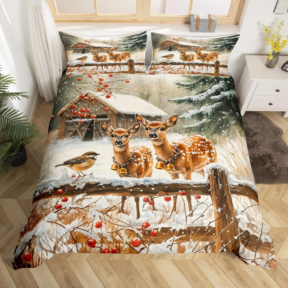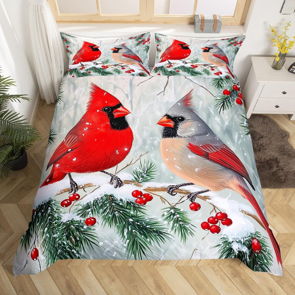 (White, Double(No Comforter)) Homewish Cardinal Double Bedding Set Red Bird Winter Xmas Comforter Cover,Christmas Rustic Vintage Farmhouse Duvet Cover
