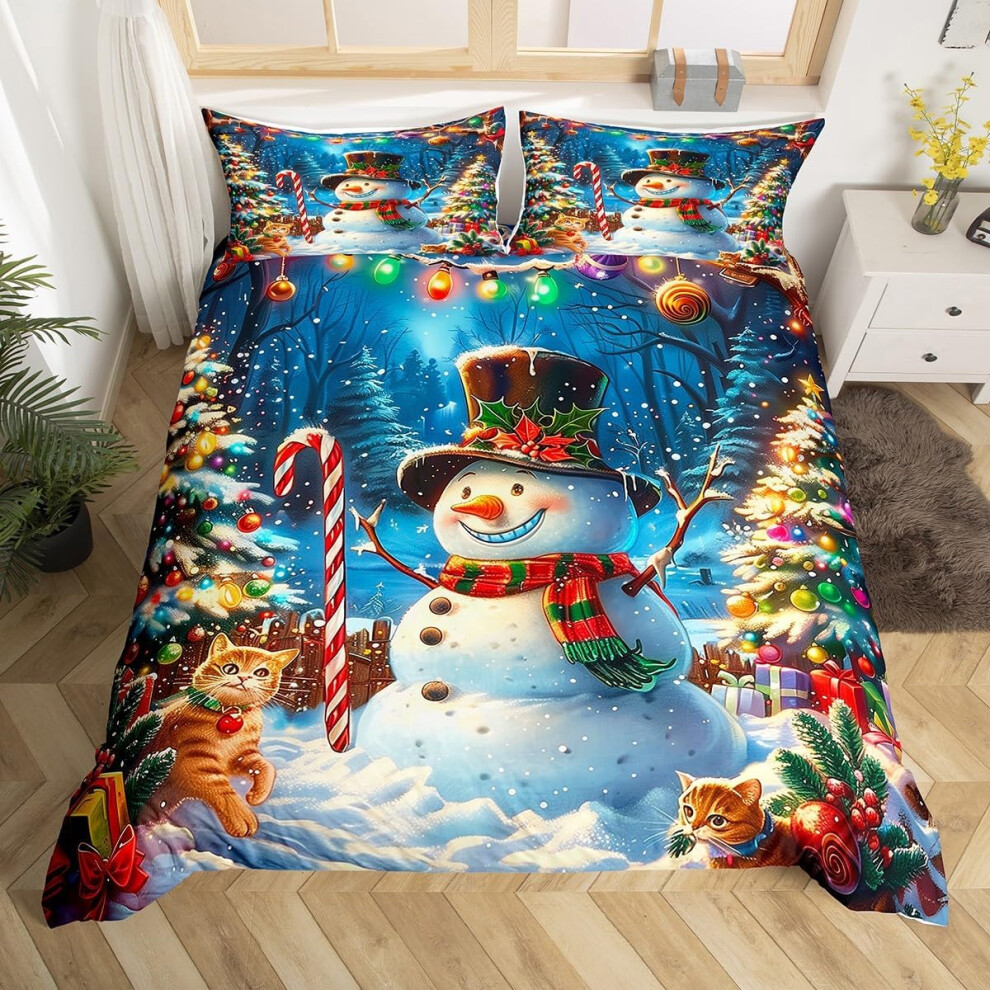 TheWhiteWater Limited Christmas Bedding Duvet Set ? Cats and Bells - Double Bed (3 Pieces) 3D Print ? XMAS Celebration Bedding DUVET Cover with 2