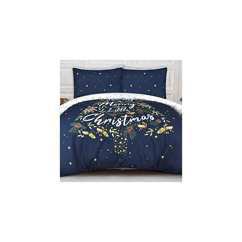 Sleepdown Merry Christmas Holly Tree Navy White Reversible Duvet Cover Quilt Bedding Set with Pillowcase Soft Easy Care Bed Linen - Single (135cm x 200cm), 5056557512706, Blue
