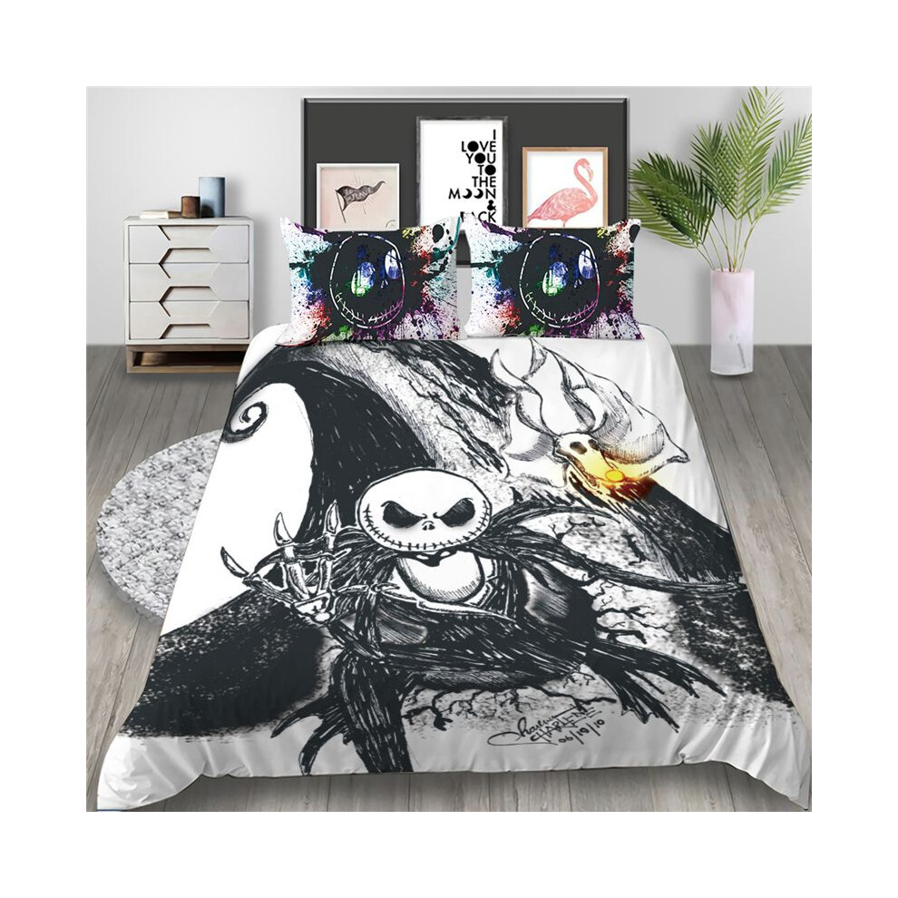 (White Black, EU-Single-2pcs-135*200cm) The Nightmare Before Christmas Bedding Set Quilt Duvet Cover Pillowcase Eu Us