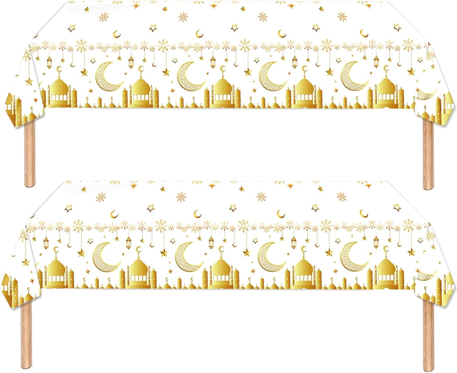 2pcs Ramadan Table Cloth for Eid Tablecloths Party,130*220cm White Gold Eid Dec