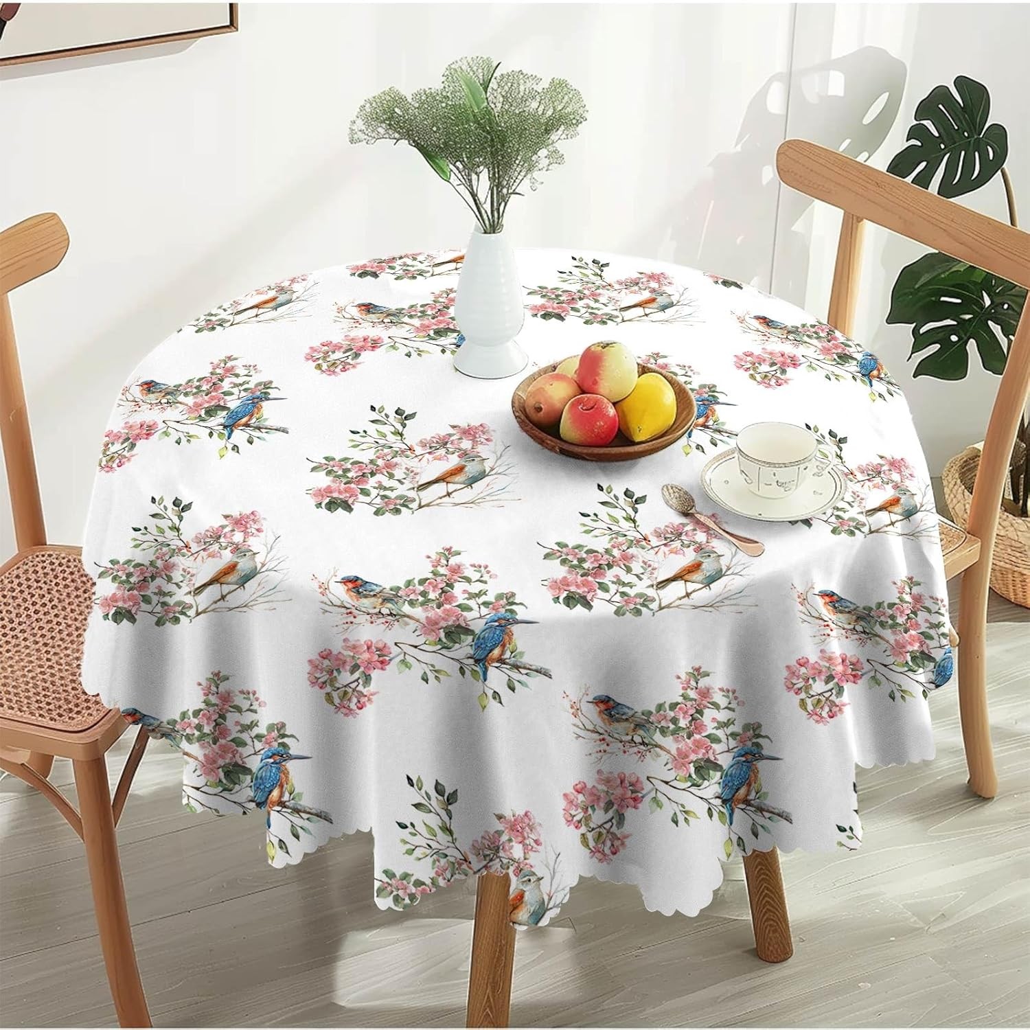 Treer Floral Print Table Cloth, Square Tablecloths Wipeable Splash Proof Tablecloth Table Cloths for Kitchen Decoration Outdoor Picnic (White,90x90cm)