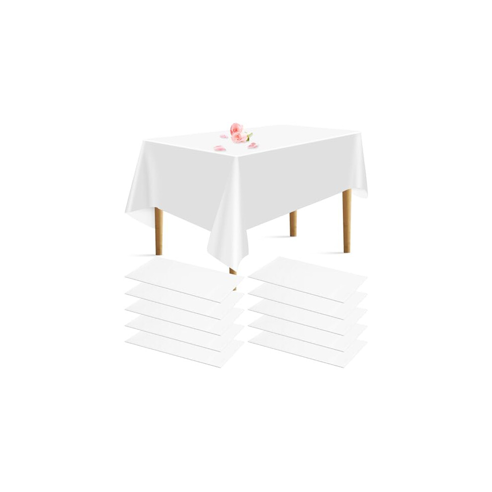 10 Pack White Table Cloth,Disposable Tablecloths,54 x 108 Inch Tablecloth for Rectangle Tables,Plastic Table