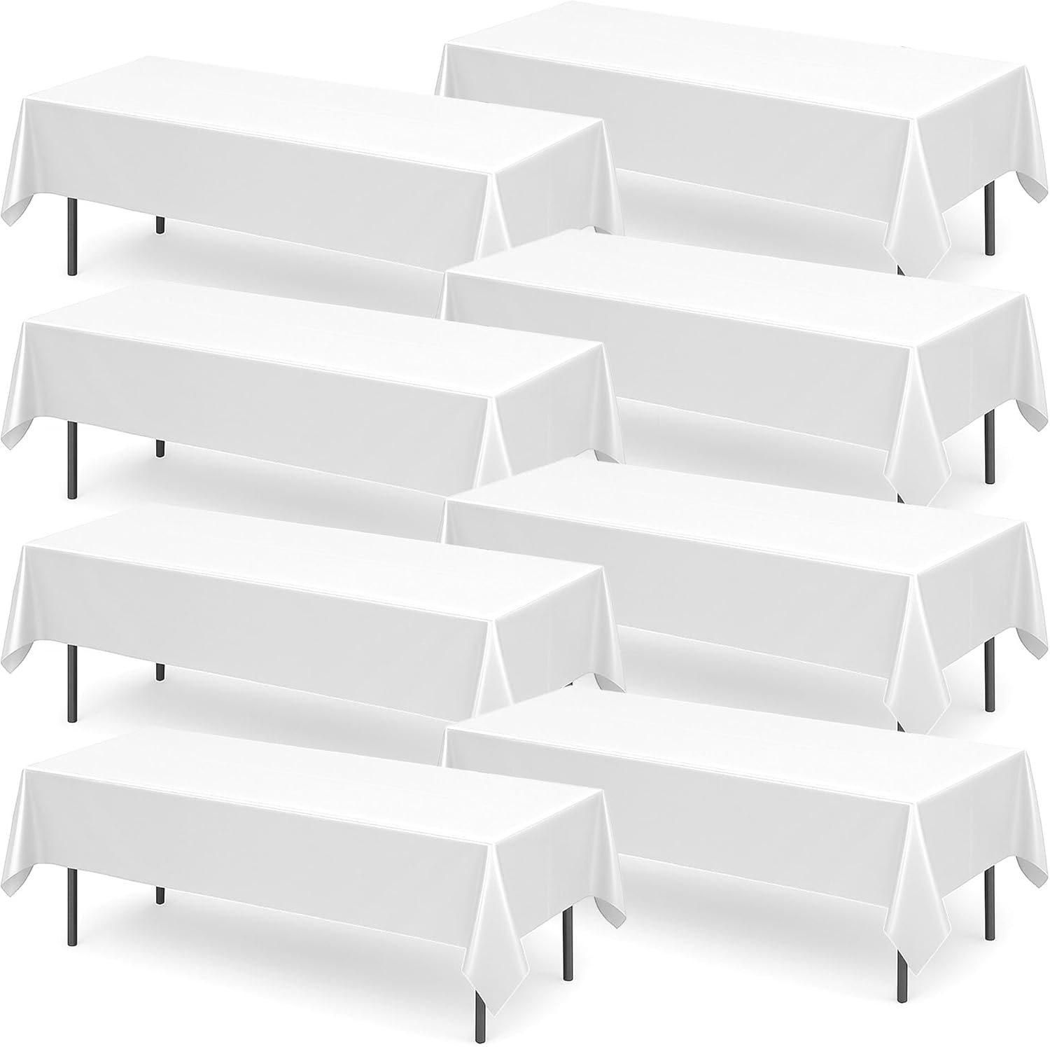 Pureegg Plastic Table Cloth Disposable 8 Pack, 137 x 274 cm Table Cloths for Parties, Decorative Tablecloths for Rectangle Tables, White Plastic