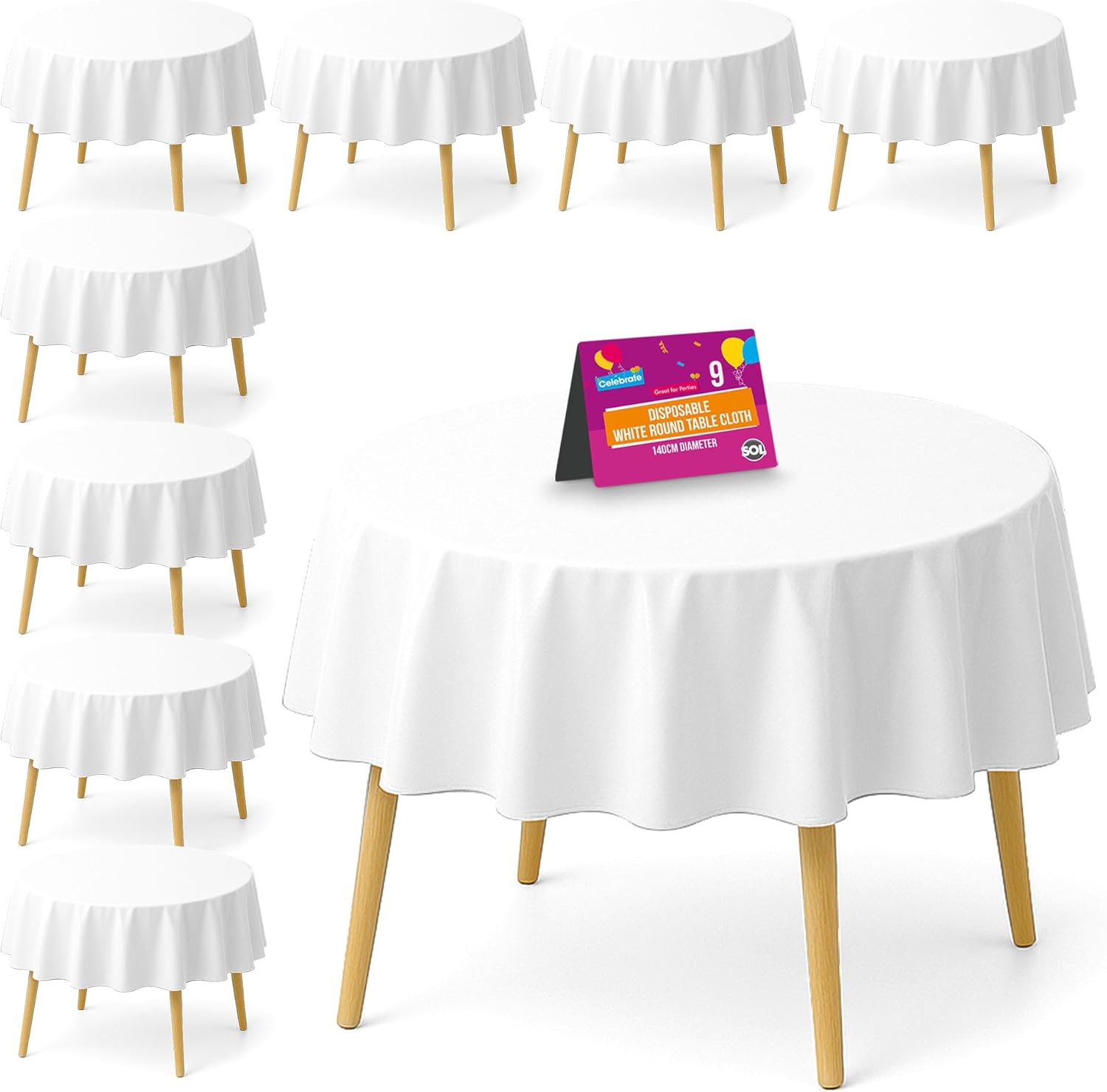 SOL 9pk White Round Table Cloth Disposable 140cm Party Tablecloths for Circular Table Cover - Durable Spill Protection - Christmas Decorations New Years Eve 2026 Weddings Buffets Catering Restaurants