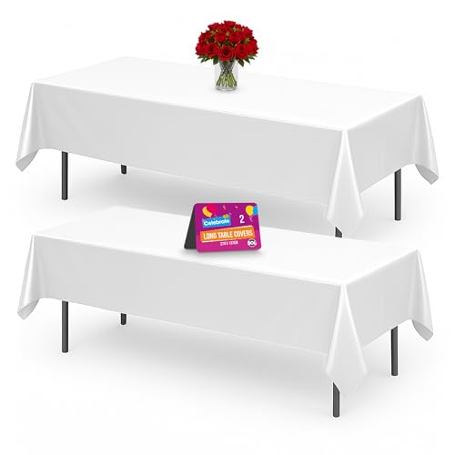 SOL 2pk Long White Table Cloth Party 274x137cm Plastic Cover Disposable Tablecloths for Parties - Heavy Duty Spill Protection - Opaque Design for Weddings, Buffets, Catering, Outdoor & Theme Events