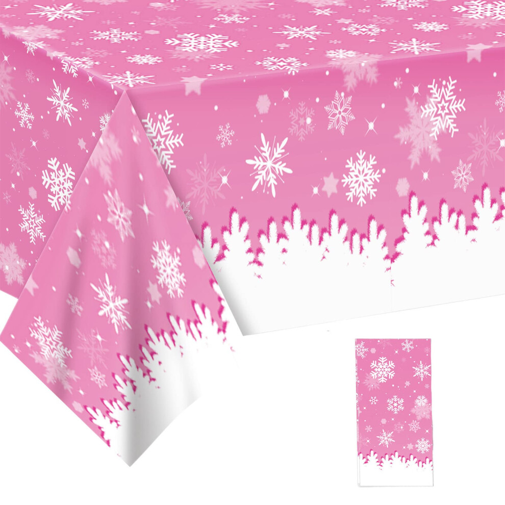 Pink and White Snowflake Tablecloths for Christmas Party,130*220cm Christmas Winter Snowflakes Table Cover Disposable Plastic Table Cloth for Winter