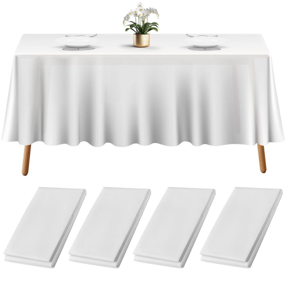 4 White Plastic Tablecloth - 108 X 54 Plastic Table Cloth - Disposable Tablecloths - White Table Cloth - Plastic Table Cover - Tablecloths for BBQ Pa