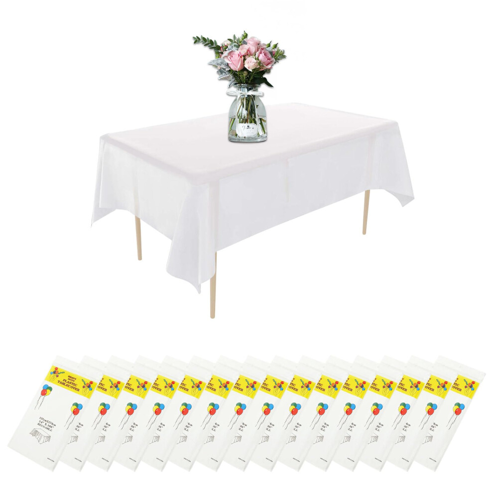 White Disposable Table Cloth 15 Pcs, 54 X 108 Inch, Plastic Disposable Tablecloths For Parties, Picnics, Weddings