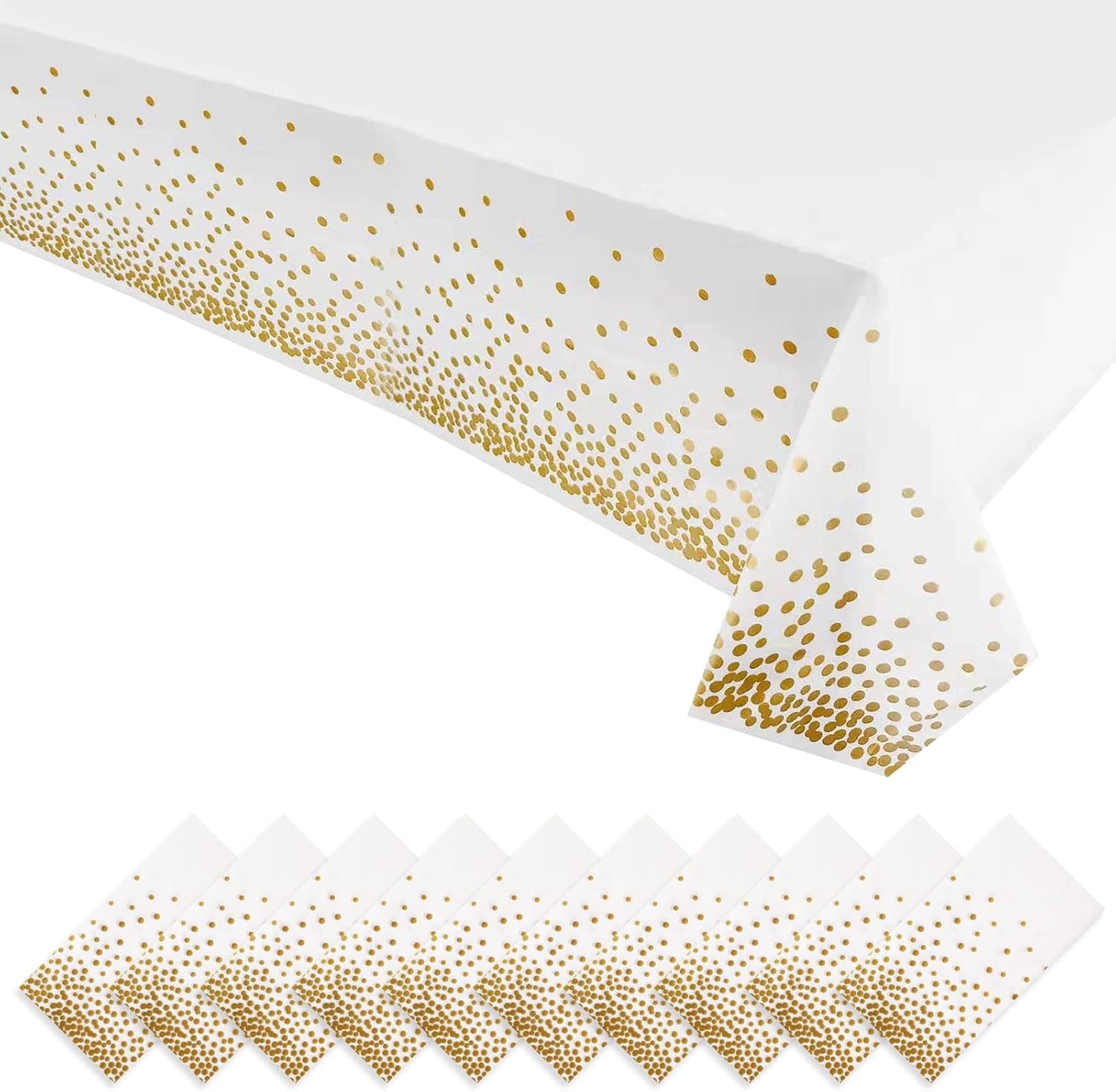 Time to Sparkle 10 Pack Plastic Tablecloths 54" x 108" Plastic Dining Table Cloth Premium Rectangle Table Cover for Parties Wedding Banquet etc Indoor Or Outdoor(White Gold)