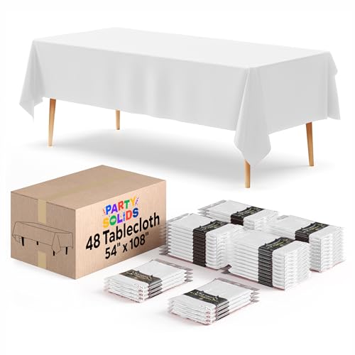 Exquisite White Tablecloths for Rectangle Tables in Bulk 48 Pack White Plastic Disposable Table Cloth 54" Inch X 108" Inch White Tablecloth Plastic Table Cloths for Parties Disposable by The Case