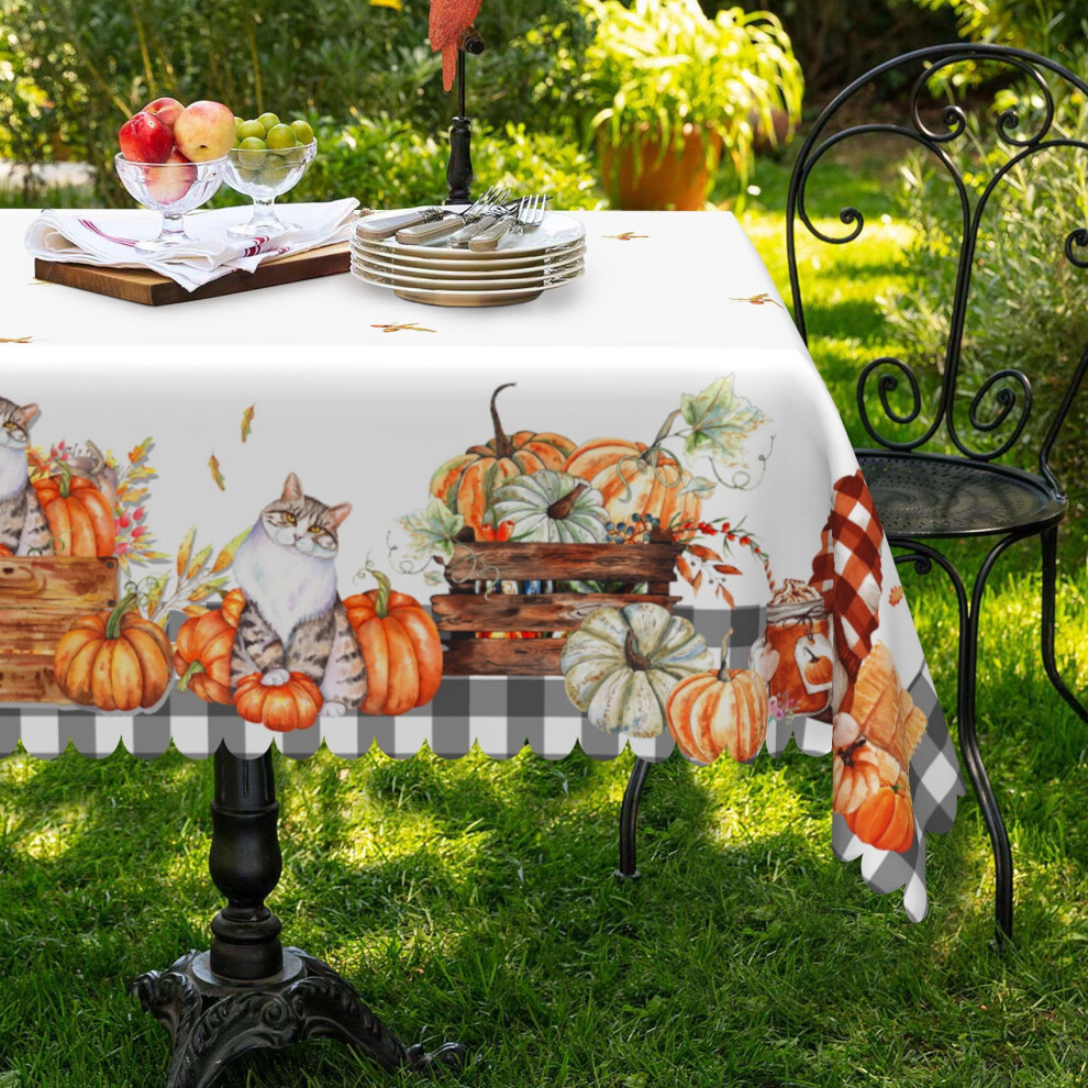 Mizhona Fall Pumpkins Tablecloths for Rectangle Tables Gnome Cats in White Table Cloth for Kitchen Dinner Decor,60"x84"