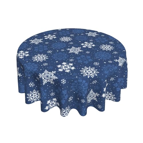 Aytipun Round Winter Tablecloth, Christmas Dark Blue and White Snowflakes Print Table Cloth Xmas Holiday Decoration Decorative Tablecloths Seasonal Decor for Home Kitchen Party Picnic Dinner