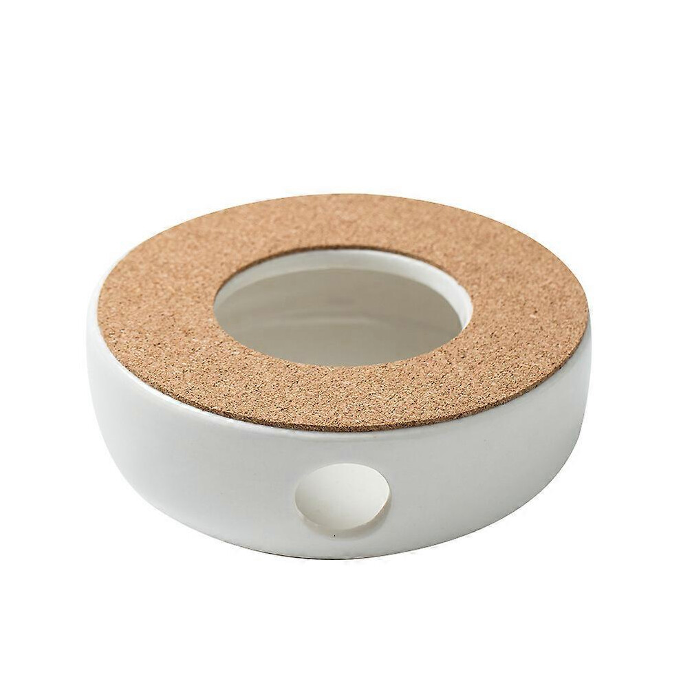 (As show, One size) Warmer Teapot Base, Porcelain Heater, Ceramic White Tea Cozy, Coffee Maker Warmer Base With Cork Mat