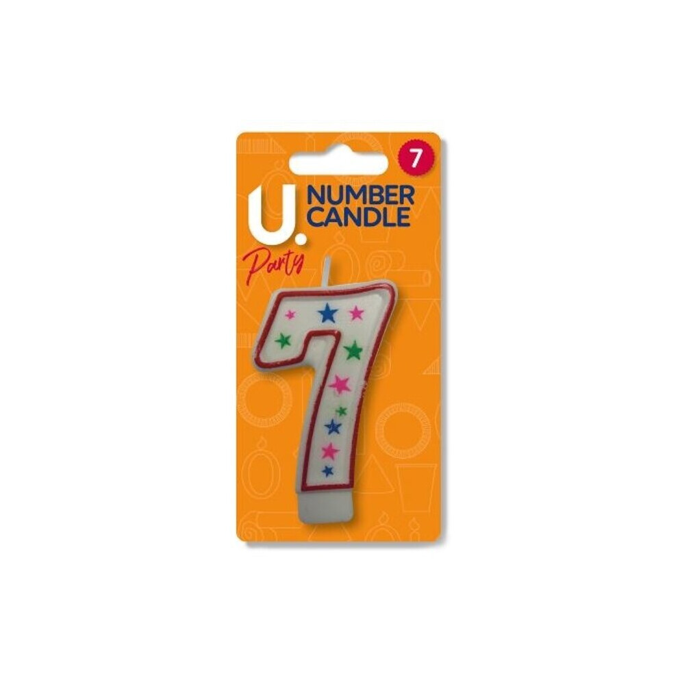 (7) Birthday Cake Number Candles 0 - 9 All Ages White And Red With Coloured Stars