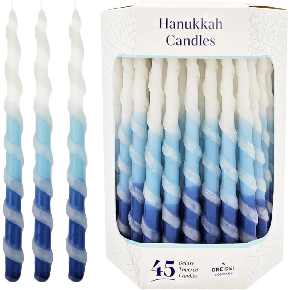 The Dreidel Company Deluxe Twisted Blue & White Hanukkah Menorah Candles for All 8 Nights of Chanukah (Single)
