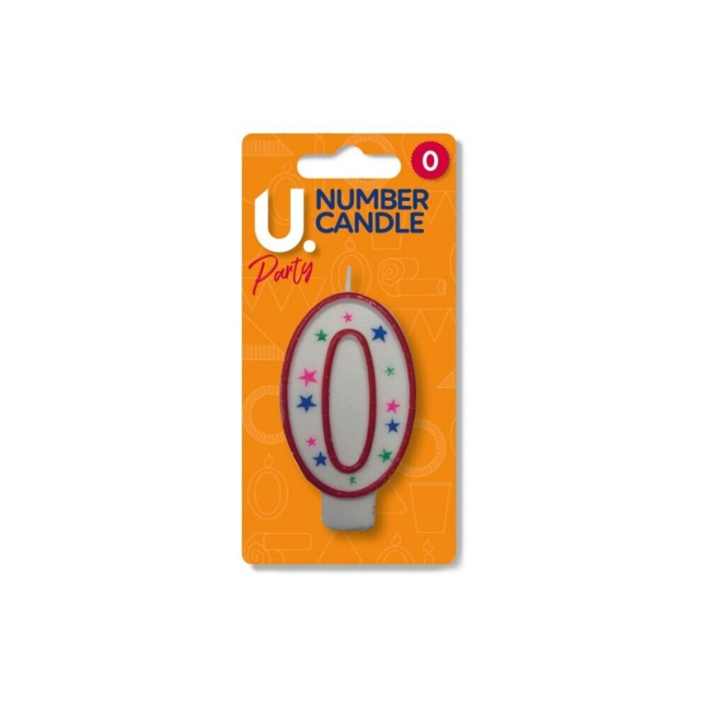 (0) Birthday Cake Number Candles 0 - 9 All Ages White And Red With Coloured Stars