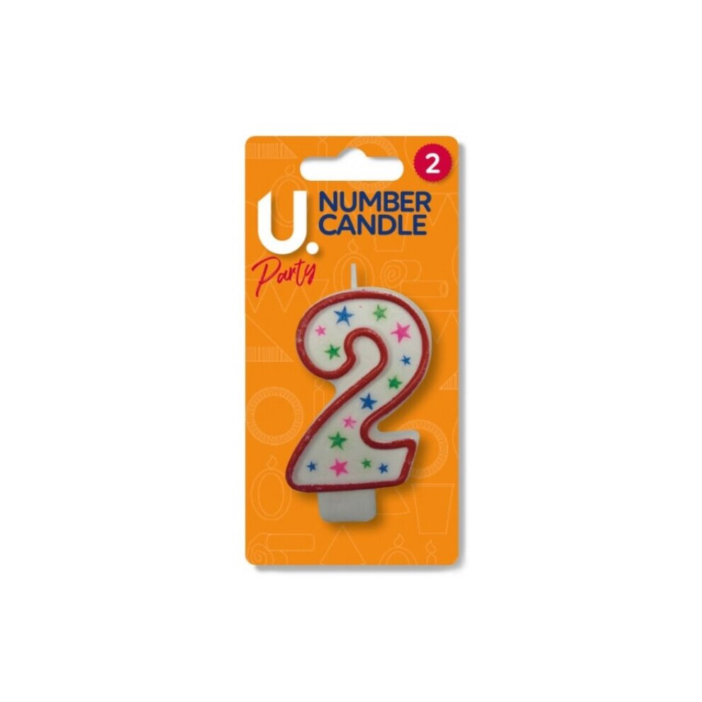 (2) Birthday Cake Number Candles 0 - 9 All Ages White And Red With Coloured Stars