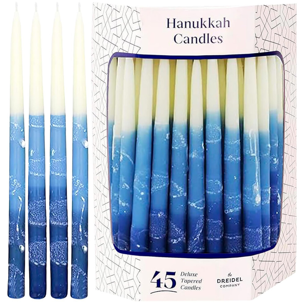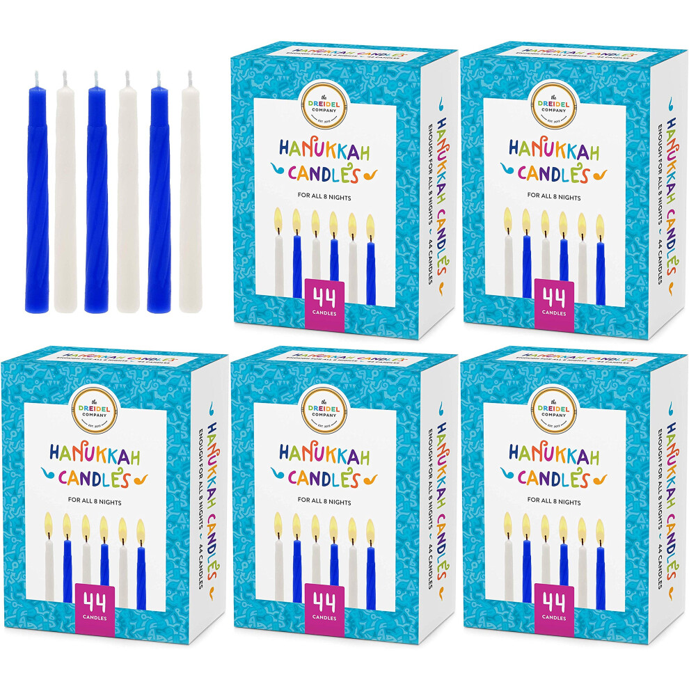 The Dreidel Company Menorah 44 White and Blue Hanukkah Candles for All 8 Nights of Chanukah 5-Pack