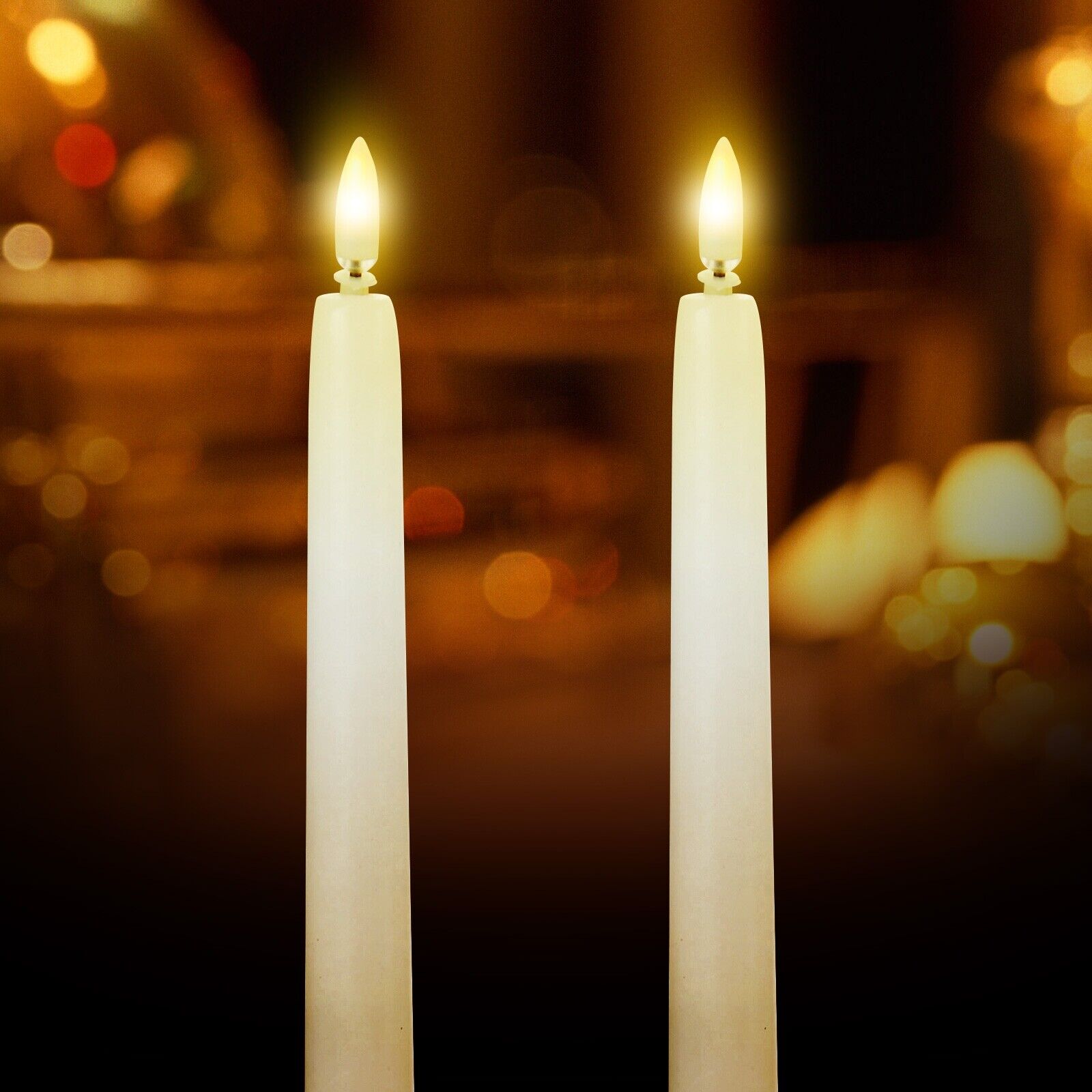 27cm Flickabright Dinner Candles - Ivory - taper, real wax, amber, LED, flicker,