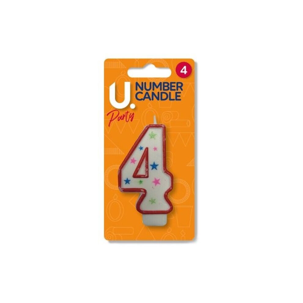 (4) Birthday Cake Number Candles 0 - 9 All Ages White And Red With Coloured Stars