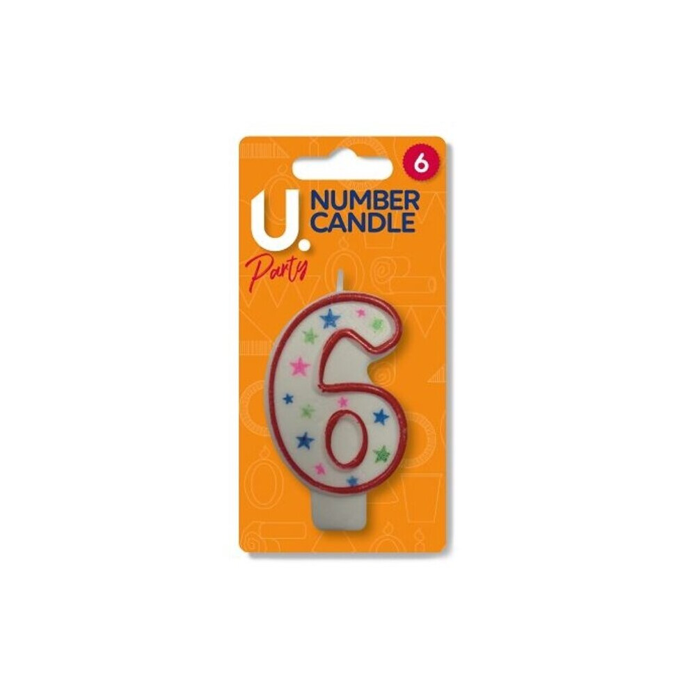 (6) Birthday Cake Number Candles 0 - 9 All Ages White And Red With Coloured Stars