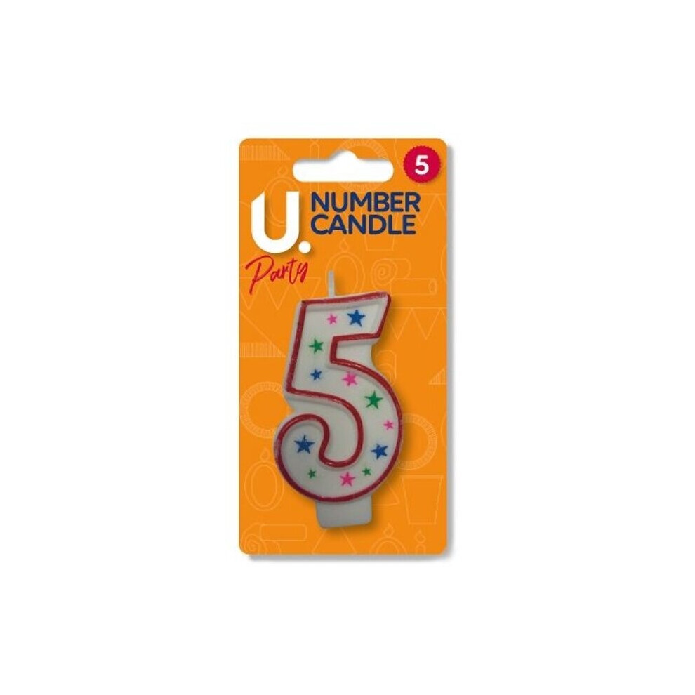 (5) Birthday Cake Number Candles 0 - 9 All Ages White And Red With Coloured Stars