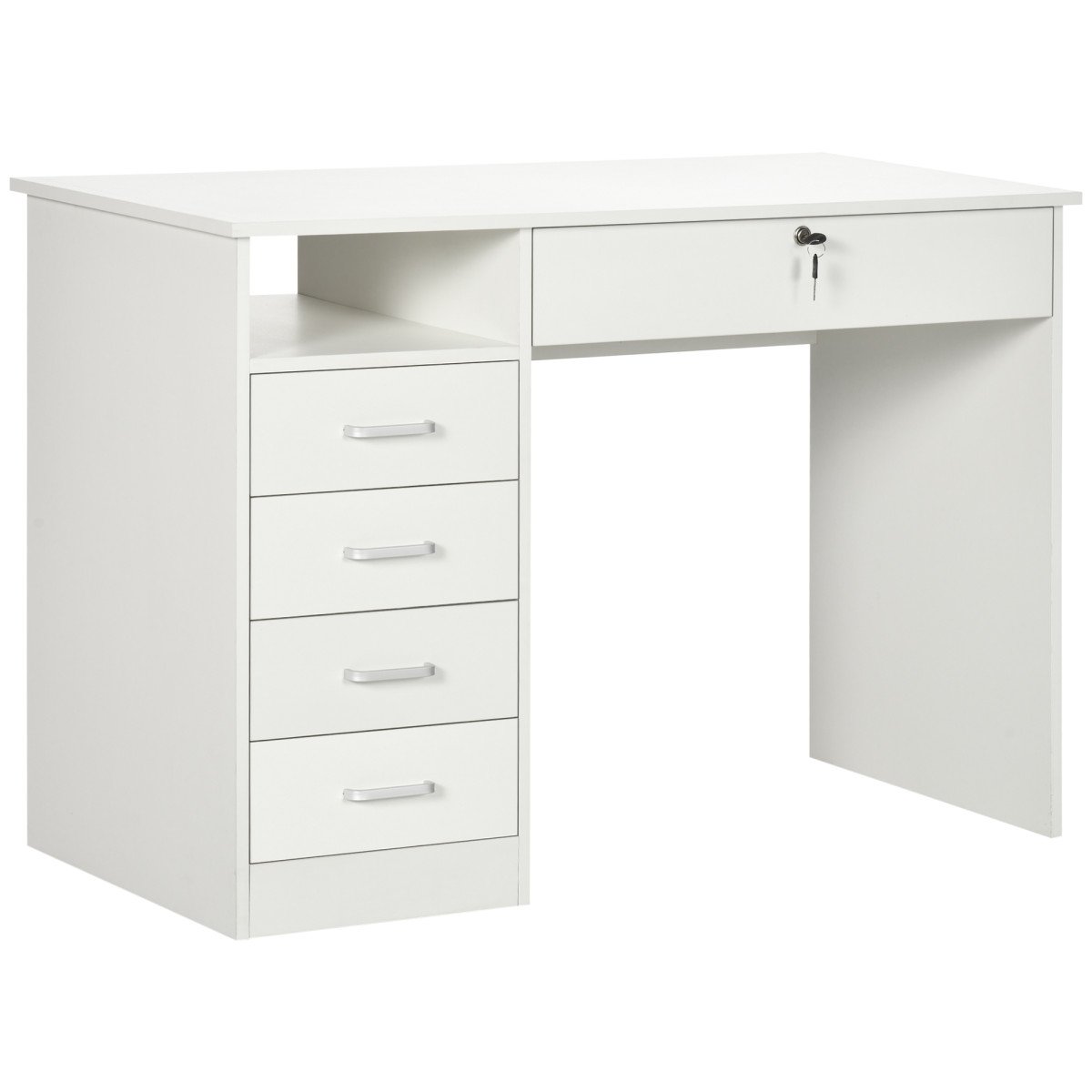 White Computer Desk 76H x 110L x 50W cm with 5 Drawers for Home Office