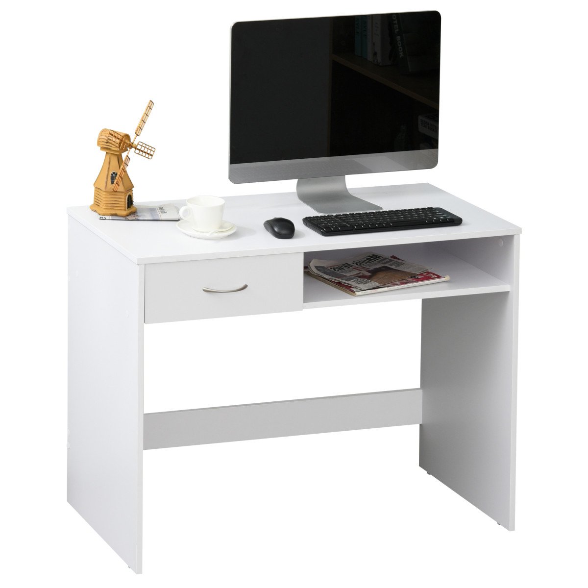 Yaheetech White Compact Computer Desk with Drawer/Shelf for Small Spaces Home Office Furniture
