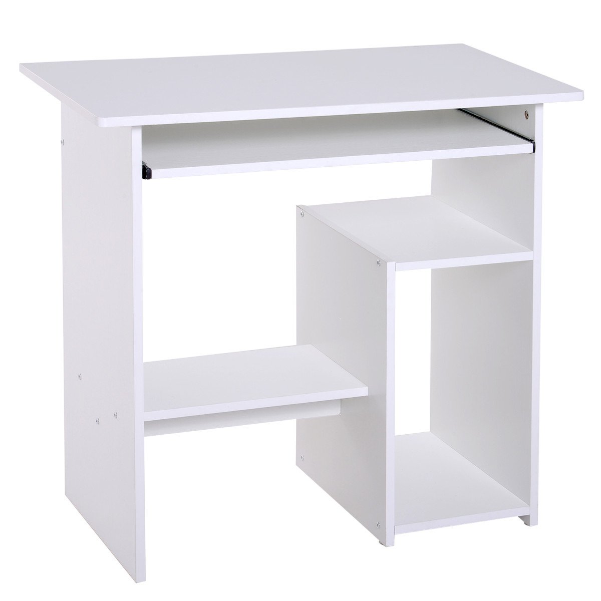 White Computer Desk Slide Out Keyboard Tray Storage CPU Shelf Compact Home Table