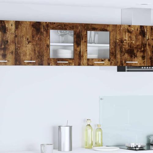 SKTQYQO Hanging Cabinet with Door Smoked Oak and White 30 x 31 x 80 cm, Modern Kitchen Storage Unit for Utensils and Cookware, 4-Piece Set, Engineered Wood Construction with Sleek