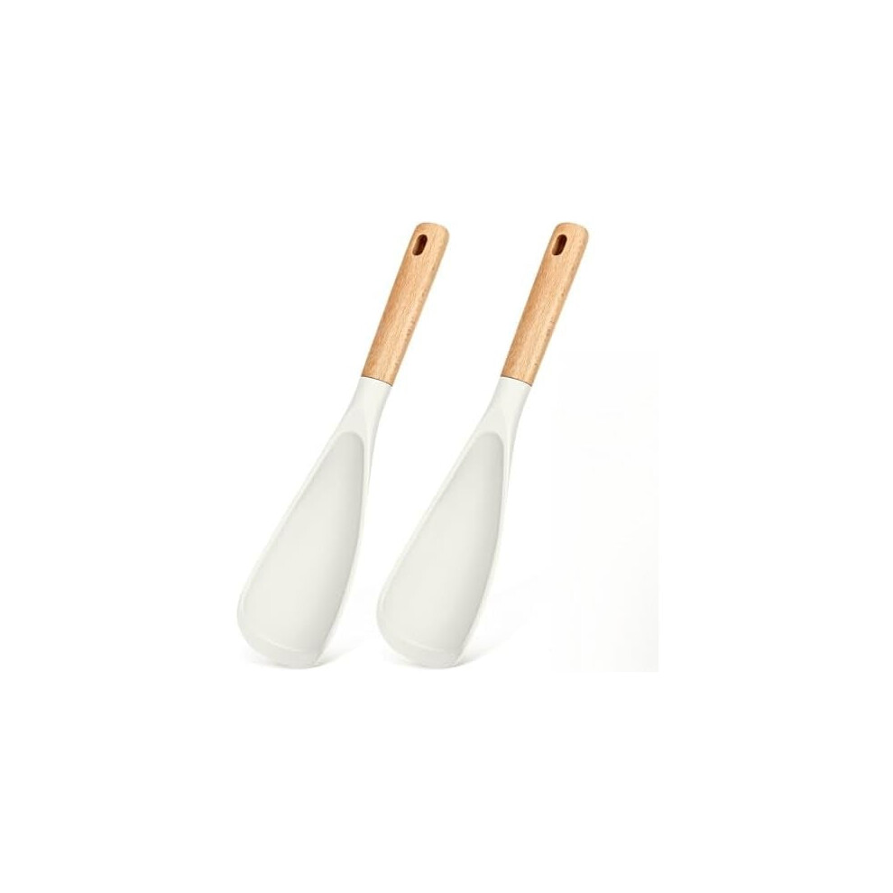 Nonstick Cooking Spoon Set â BPA-Free Matte Silicone, Wood Handle, 11.4", 2-Pack White â Compatible with Nonstick Cookware