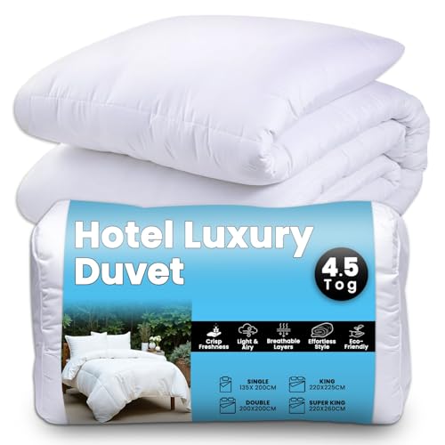 GC GAVENO CAVAILIA Super King Size Duvet 4.5 Tog - Thick Polyester Winter Quilt - Soft Warm Coverless Comforter - AntiAllergy Hotel Quality Bedding (220x260 cm) - Superking Duvets & Quilts White