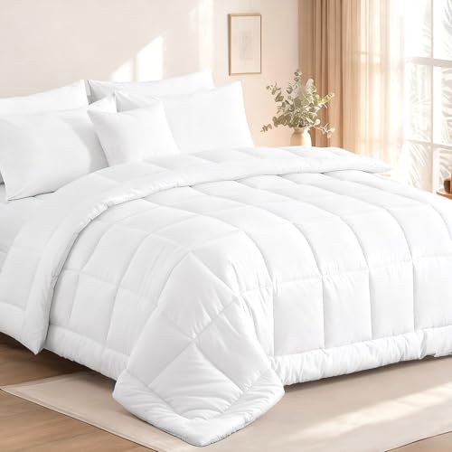 Guchuang Bedding Coverless Duvet King Size 10.5 Tog-Reversible Comforter for All Seasons-Lightweight Down Alternative Comforter (White,King)
