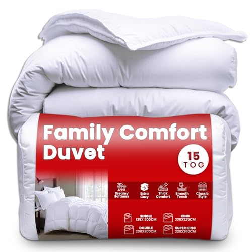 GC GAVENO CAVAILIA Super King Size Duvet - Easy Care Soft Warm Bedding 15 Tog Coverless Quilt - Anti-Allergy Winter Duvet - Hypoallergenic Superking Duvets (220x260 cm), Comforter Washable White