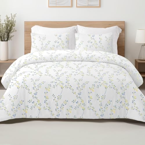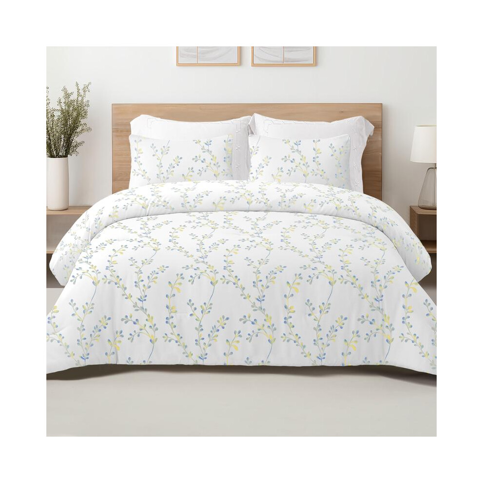 Exclusivo Mezcla Coverless Duvet Set with 2 Pillowcases, 7.5 Tog King Size Reversible Duvet All Seasons with Flower Pattern, Lightweight and Warm, White