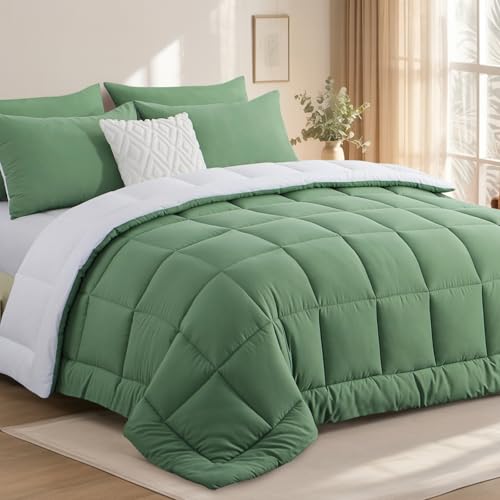 Tifschlaf Coverless Duvet King Size 10.5 Tog - Reversible Kingsize Duvet for All Seasons, Luxury Hotel Quality Quilt Washable, Cosy & Warm Comforter 230x220cm, Sage Green and White